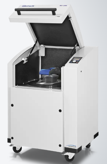 3. RS200及其研磨裝置的操作和處理非常方便,符合人體工程學(xué)。研磨罐配備有移動(dòng)手柄,便于將沉重的研磨罐運(yùn)送到研磨儀上,在導(dǎo)軌上滑入研磨站.安全緊固裝置可以用較小的力量安全地固定研磨罐;傳感器檢查其正確位置。