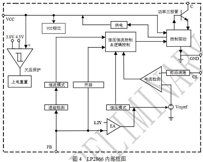 保護功能:集成了過壓保護、欠壓保護和短路保護等,提高了電路的可靠性。LP2866內部框架圖如下