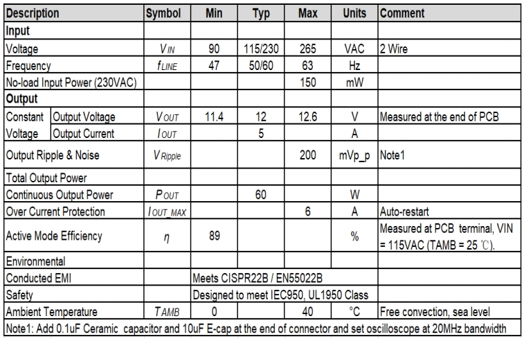 適配器在不同輸入電壓和負載條件下,均能提供穩(wěn)定的12V輸出電壓。測試報告顯示,在90Vac/50Hz和264Vac/60Hz的輸入條件下,輸出電壓的波動范圍極小,保證了連接設備的穩(wěn)定運行。