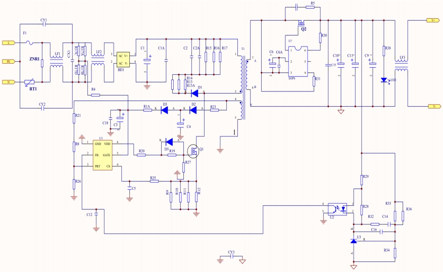 LP8773:作為主控芯片,LP8773內(nèi)部集成了PWM控制器、高壓啟動電路、過壓保護、過流保護等多種功能,確保了電源的穩(wěn)定運行。