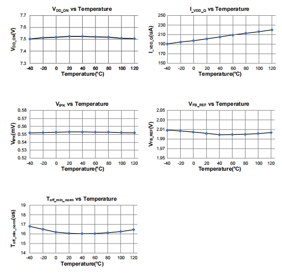 ? 輸出短路:進(jìn)入打隔模式,重啟周期 500 ms,芯片表面溫度 < 70 °C