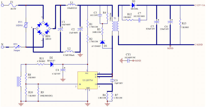 LP3716用自供電PSR架構(gòu),把高壓啟動、環(huán)路補(bǔ)償、保護(hù)邏輯全部集成,外圍僅5顆器件,單層板過EMI,83%效率,75mW待機(jī)。下次再畫“小家電輔助電源”、“路由器12V適配器”、“智能插座內(nèi)置電源”,直接抄這份參考設(shè)計(jì)——一顆LP3716,讓反激電源設(shè)計(jì)回歸“極簡主義”。