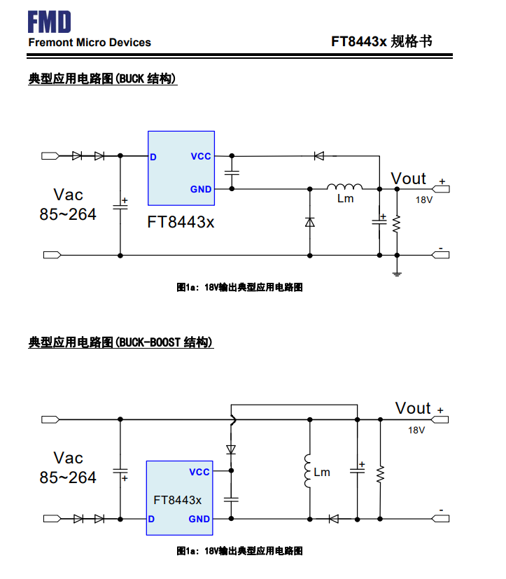 FT8443x是一款高性能、高精度、低成本的非隔離PWM功率開關。它包含一個專門的電流模PWM控制器和一個高壓功率開關管。內置的誤差放大器經過優化保證優越的動態響應。高精度的內部分壓電阻和參考電壓,以及穩定的閉環反饋使得FT8443x在全電壓輸入范圍內都能得到穩定的高精度輸出電壓。