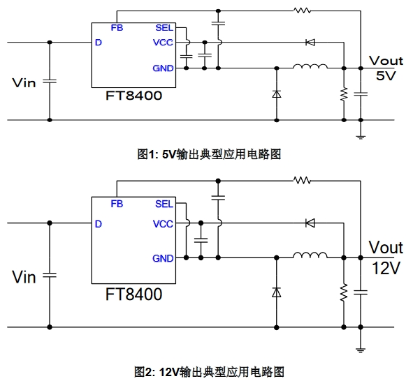 FT840X具有三種固定輸出電壓5V、9V和12V,可以通過SEL 腳進(jìn)行設(shè)定。當(dāng)SEL懸空時,輸出為5V;當(dāng)SEL接160Kohm電阻到地時,輸出為9V;當(dāng)SEL短路到地時,輸出為12V。