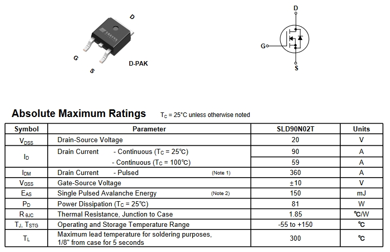 SLD90N02T是由美浦森品牌生產(chǎn)的高性能N溝道MOS場效應管,具備以下特性: