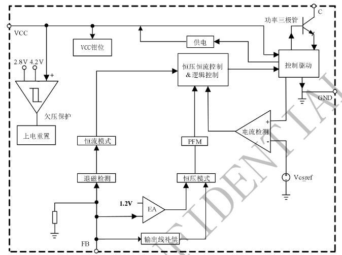 內置FB下偏電阻:固定峰值電流來實現取消限流電阻。