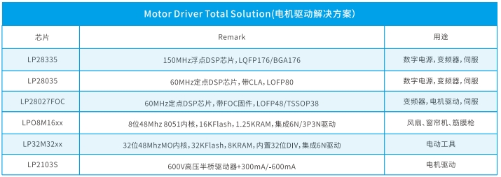 LP32M32xx系列芯片是一款32位48MHz的MO內核微控制器,擁有32KFlash和8KRAM,內置32位DIV和集成6N驅動。這款芯片專為電動工具設計,其高性能內核和豐富的內存資源使其在電動工具領域表現出色。