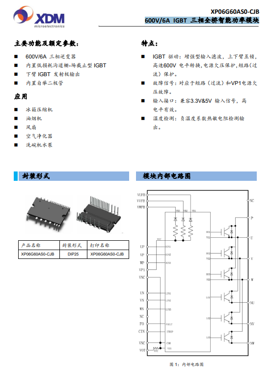 XP06G60AS0-CJPL 芯達(dá)茂 國產(chǎn)IGBT 三相全橋智能功率模塊